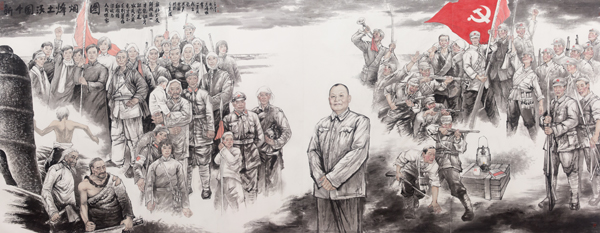 新中国沃土烽烟图 中国画 200cm×500cm 姜志峰